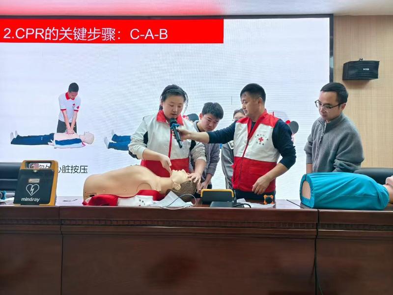 活动中,红十字会专业讲师以理论讲解与实操演示相结合的方式,全方位普及“三救”(应急救援、应急救护、人道救助)基本知识。讲师重点围绕心肺复苏、海姆立克急救法等实用技能展开教学,通过模拟人演示操作流程,手把手指导师生掌握按压位置、力度和频率等关键要点。现场师生积极参与互动演练,在实操中深化急救知识记忆,切实提升应急处置能力。