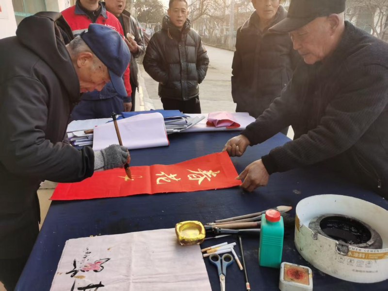 一声声道谢在墨香中回荡,不知不觉已至正午十二点,一上午的时间,他竟写下了两百余副春联。待写完最后一副,村民们都回家准备午饭,他却顾不上休息,又忙着收拾笔墨、筹备纸张,为奔赴下一个地点做准备。
