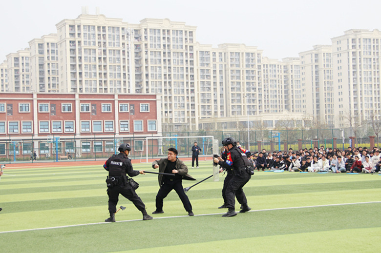 活动以市局特巡警支队反恐防暴最小作战单元实战演练开场:演练模拟一男子酒后寻衅滋事,砍伤路人。特巡警处突组接警后,快速到达现场,疏散人员、战术推进、分组控制、抢救伤员、保护现场、固定证据、舆情管控、撤离现场等环节动作一气呵成,博得在场师生阵阵掌声。随后,民警又相继开展了机器人排爆、无人机穿越飞行和水上救援,每项演练都让广大师生大为惊叹,齐声喝彩。演练结束后,宿马分局民警辅警通过拉宣传横幅、散发宣传彩页等方式,向广大师生宣传反霸凌、反电诈、禁毒等基本常识并用通俗易懂的语言,解读相关法律法规,告诉同学们遇到危险如何正确求助、如何辨别不良行为、怎样用法律武器保护自己,引导大家自觉遵守校规校纪,树立遵法、学法、守法、用法意识,争做文明守纪的好学生。