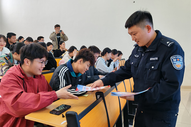 在宿州航空职业学院,宣传民警辅警走进操场、走进教室,利用展板、发放宣传手册、现场讲解等形式,向在校学生宣传普及国家安全方面的法律法规,利用典型案例对常见网络谣言、个人信息泄露、电信诈骗、反渗透等进行现场讲解,面对面教育他们安全文明上网,共建清朗网络空间,共同维护国家安全。