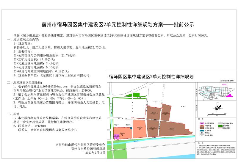 宿马园区集中建设区2单元控制性详细规划公示