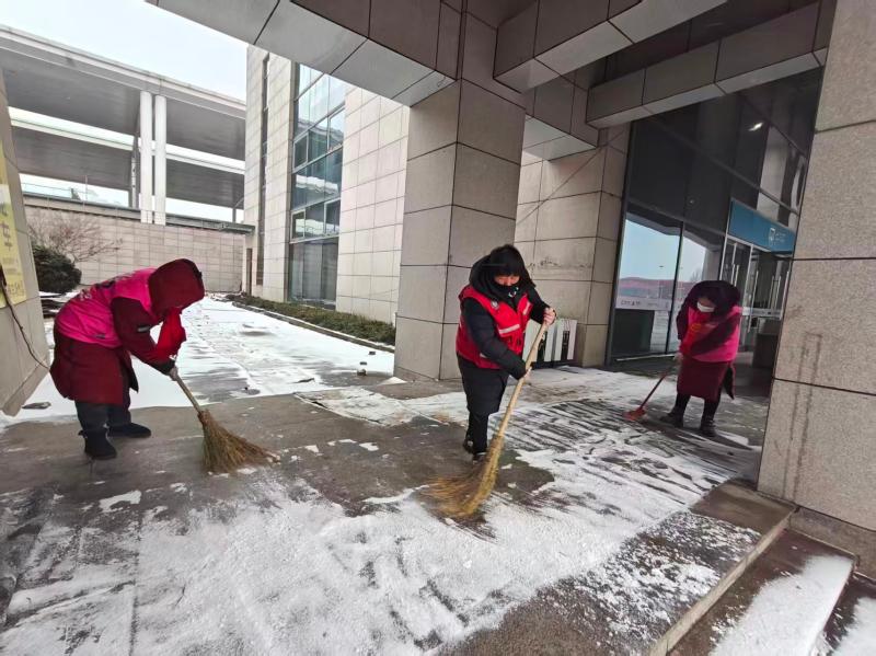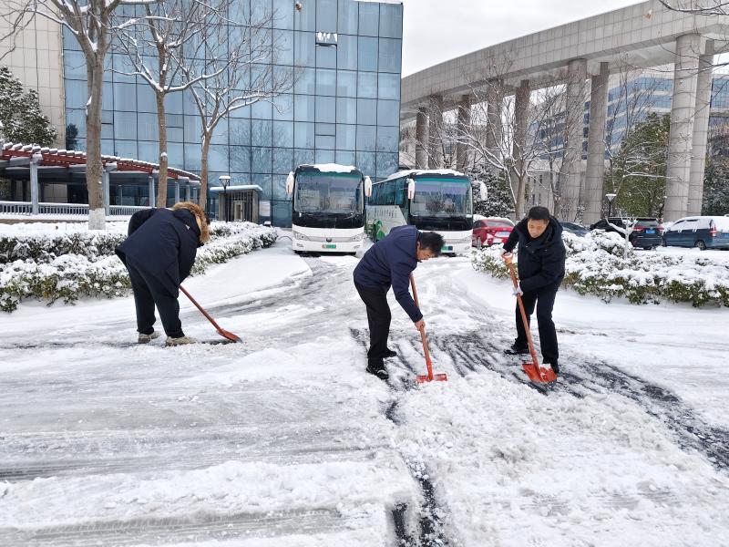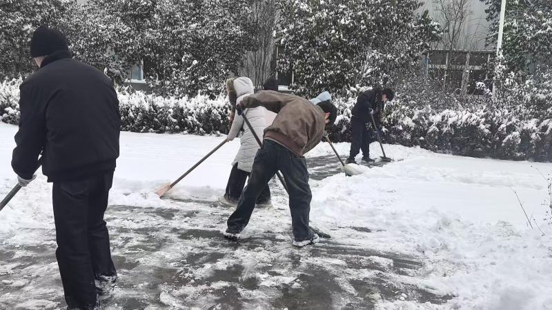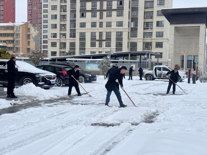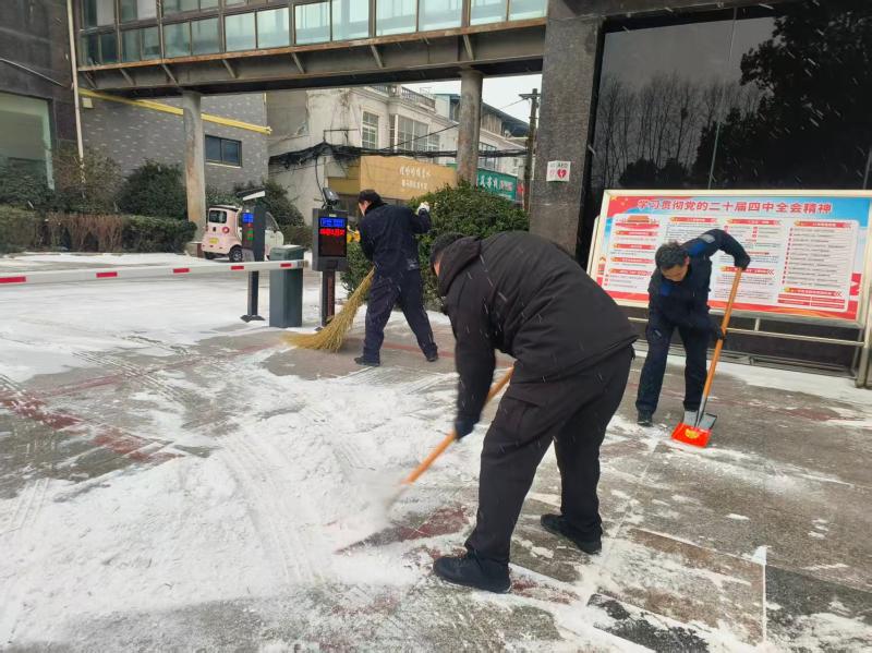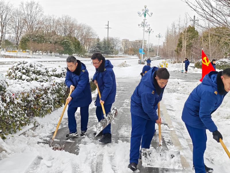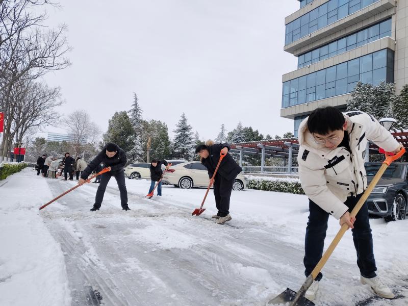 园区各级党组织闻令而动,党员干部率先垂范,手持铁锹、扫帚,深入园区重点区域,带头清扫积雪、破除冰冻。
