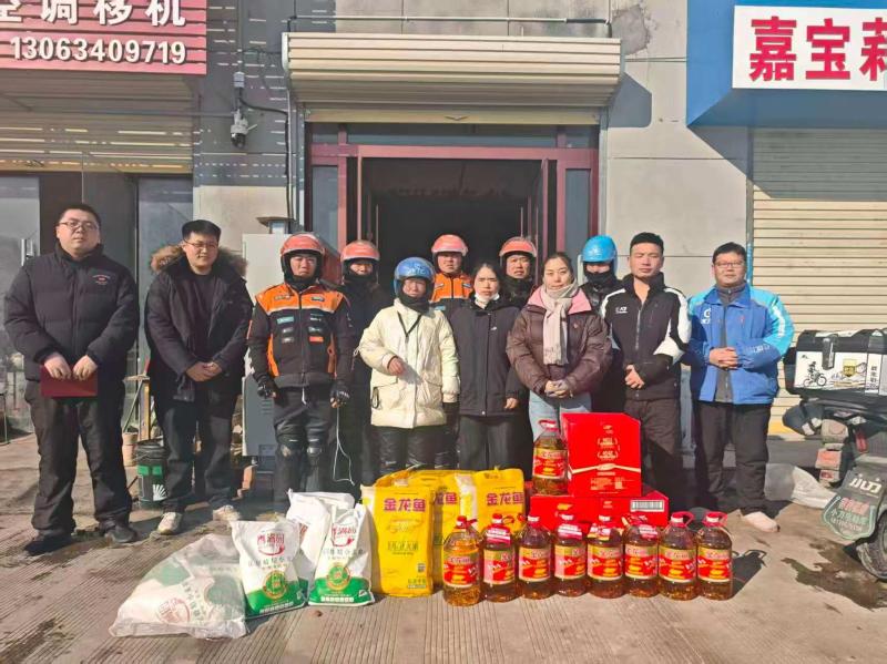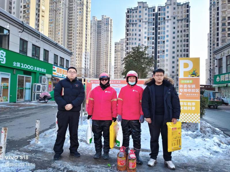 本次活动,园区慰问人员前往快递、外卖站点,亲手送上“米面油生活礼包”,并与一线从业者面对面交流,细致了解他们的工作日常、生活状况及实际需求,并反复嘱咐雨雪天气注意出行安全。
